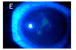 An eighteen-year-old male, equestrian rider, presented to the outpatient clinic with left severe eye pain, redness, tearing, photophobia and blurring of vision for 3 weeks. He is a myopic contact lens wearer, with poor contact lens hygiene. Before presenting to our cornea service, he was treated elsewhere for bacterial conjunctivitis with topical ciprofloxacin and steroid drops, which exacerbated his symptoms. He denied any recent traveling and close contact with unwell individuals. His initial distance visual acuity with correction was 6/6 for the right eye, and 6/24 left eye. Corneal sensation was intact. Slit-lamp examination of the right eye revealed blepharitis and scars of previous marginal keratitis. However, the left eye showed increased lacrimation and marked ciliary injection. The left cornea had a superior paracentral infiltrate, with positive fluoresceine uptake, measuring 0.5x0.5 mm and an early semi- ring infiltrate associated with limbitis. The corneal epithelium had an unhealthy appearance, upper and lower palpebral conjunctiva with hyperemia (Figures 1A–1D).