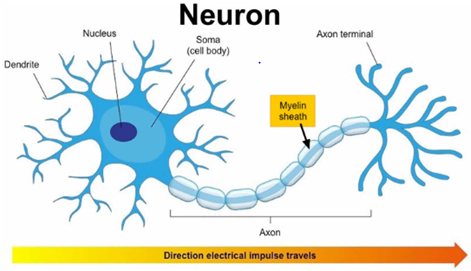 Within large tracts of white matter, there would be variably myelinated from fully (efficient) to partial (inefficient) and to non-myelinated axons (non-conducting). What would this then imply in the context of analogue systems and electrical current instead of action potentials describing energy passed along neurons? The myelin sheath is the protective, fatty coating surrounding axons, similar to the protective insulation around electrical wires. This coating enables the electrical impulses between neurons to conduct efficiently, minimizing energy loss due to potential cross talk among neurons. Full myelination of axons occurs over a lengthy time period, with those in the prefrontal cortex being the last to fully myelinate at approximately age 25 years.