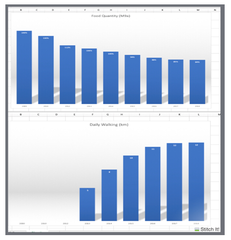During the period of 1/1/2012–7/20/2018, his medical condition changes and major lifestyle modifications are shown in Figures 2–6. The summarized highlights of results are listed: