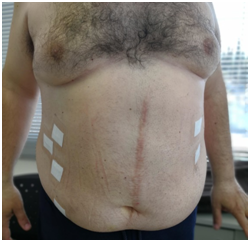 Incisional – multiple defects(17cm) after splenectomy from a car accident |