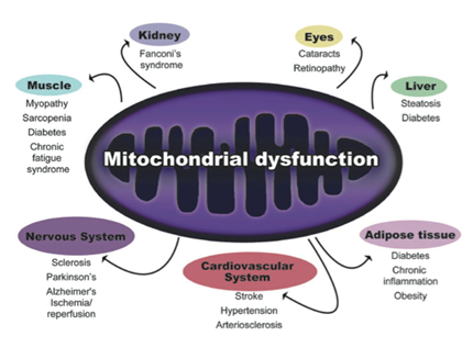 Since the mitochondria are the site where most oxidative stress in the form of ROS exists, it is important to take a closer look at how CR affects this key region in the cell.14 Mitochondrial dysfunction increases with age; it can implicate the process in which a plethora of diseases develop: cataracts, diabetes, obesity, inflammation, hypertension, atherosclerosis, Parkinson’s disease, Alzheimer’s disease, nervous system ischemia, sarcopenia, chronic fatigue syndrome and Fanconi’s syndrome.15 Because respiratory activity (mitochondrial biosynthesis) enhances cell longevity, this process plays a major role in the lifespan of an organism. Mitochondrial dysfunction can develop from nonfunctional complexes from within the electron transport chain (namely age-related downfall of complex IV), DNA damage and/or the accumulation of nonfunctional proteins resulting from ROS.15,16 In CR animals, it has been demonstrated that even a short duration of two weeks had a significant effect in improved mitochondrial function.17 A suggested explanation of this could be the correlation of CR alteration with mitochondrial membrane fatty acid composition, which increases functionality. In expression and activation of transcription factor PGC-1α leads to increased mitochondrial mass and biogenesis through a variety of mechanisms; in addition, this expression is shown to be maintained with aging (Figure 1).18,19