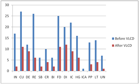 Table 3 Total number of appearances of factors before and after the successful weight loss period of eight weeks of VLCD