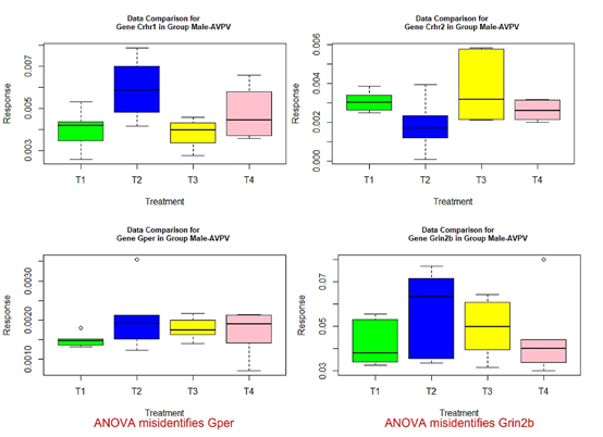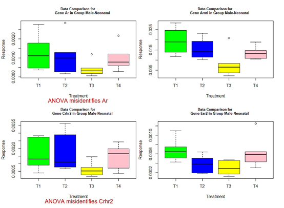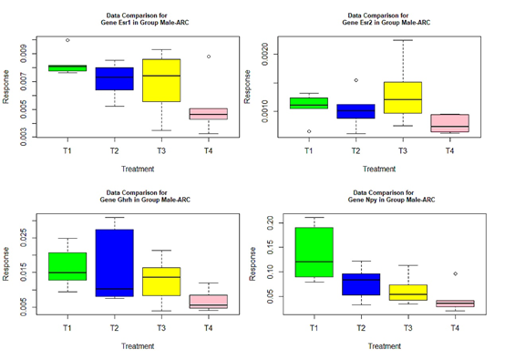 Figure 2 Box plots for four significant genes in group male-ARC.