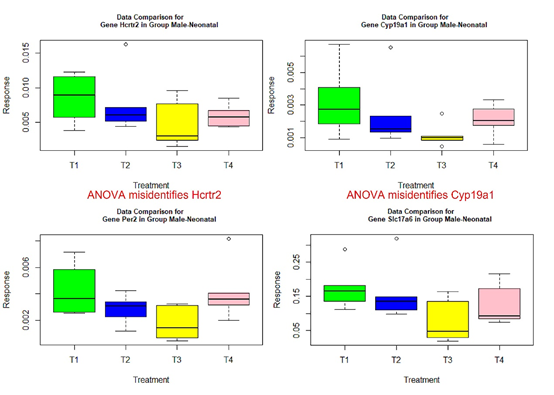 Figure 1 Box plots for four significant genes in group male-neonatal.