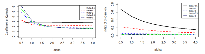 respectively. Graphs of coefficient of variation (C.V), coefficient of Skewness (S.K), coefficient of kurtosis (S.K.) and index of dispersion (I.D) of WAD for values of parameters are shown in figure 1. The graph clearly explains the nature for variation in parameters.