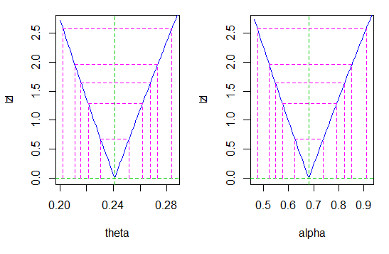 The profile of likelihood estimates of parameters