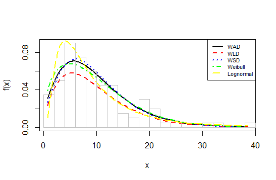 of WAD for the given dataset is shown in figure 3. Also the fitted plots of the considered dataset for WAD are shown in figure 4.