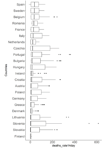 Deaths in 14 days per million inhabit. |