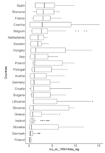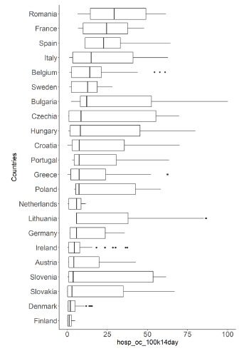 For imputation of missing values, we considered three groups of countries: first, those with no data on ICU occupation, second, those without data on Hospital occupation and third, Greece that hasn't either but has data on hospital admissions.