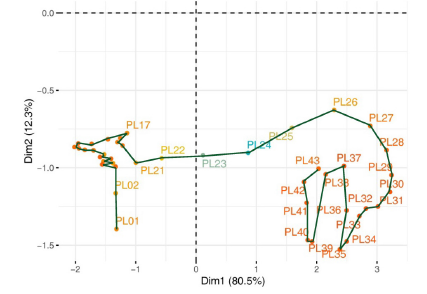 Multivariate exploratory statistical methods, namely a 3-way data analysis (double principal components and rank principal components analyses), were applied with software R version 4.1.0.