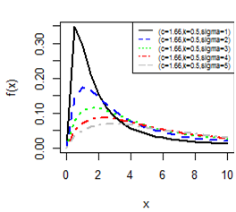 Figures 1-4 gives the pdf plot for three parameter Burr type XII distribution and Lomax distribution for different values of parameters. Figure 3 & Figure 4 are especially for Lomax distribution. It is evident that the distribution of the rv X exhibit a right skewed nature.