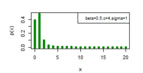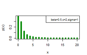 , then the distribution is monotonic decreasing for all x=0,1,2,…..] , the value of c plays a very important role in determining the shape of the cdf curve , the lower the value of c , the sharper the fall of cdf curve, while lower the value of k parameter, the sharper the initial rise of the cdf curve.