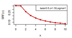 Figures 14-19 illustrates the second rate of failure plot for DBD-XII and discrete Lomax models for different values of parameters. For c >α; r(0)< r(1) and SRF(0)< SRF(1) and for all other values of x ≥ 1, r(x) and SRF(x) decreases, clearly the hazard rates of continuous model and the discrete modal shows the same monotonocity. In case