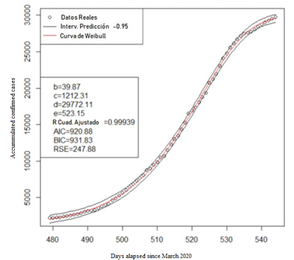 In this case were used five-parameter models obtained from the Gompertz, Weibull and Log-Logistic models, which have been used successfully in the Covid-19 epidemic for the cases of China, Italy, South Korea, Costa Rica and various countries.6–11