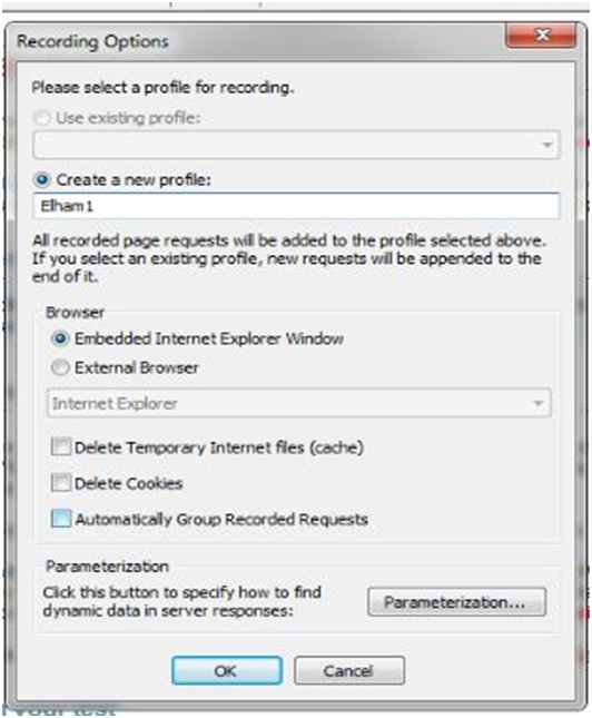 Based on the rule that states each virtual user simulates the activity of one real user, the user should start creating new profile for the virtual user (here we’ve named it Elham1 indicating that the users in this test will only view that site) (Figure 2).