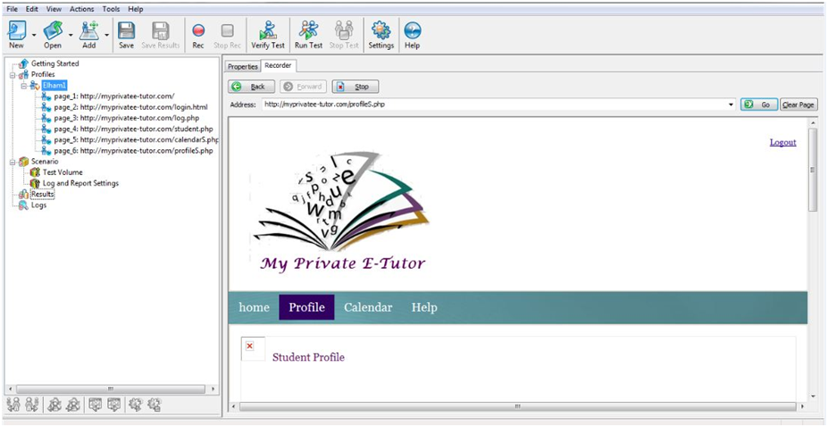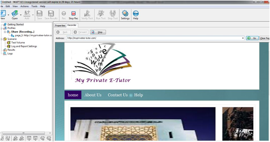 The student then will enter the site URL in the address bar; will display the site inside WAPT where the administrator can navigate through it while the recorder records each step. These steps will be transformed into HTTP request that will be sent to the server (Figure 3).