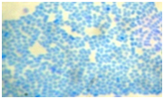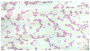 P. multocidaorganisms were Gram negative, cocco-bacillary or short rod shaped and generally arranged single or in pairs (Figure 5). Rod shaped bacteria with bipolar appearance was observed after Leishman's staining (Figure 6) of fresh culture of the organisms, which was indicative of P. multocida.Methylene blue staining technique revealed blue, cocco- bacillary shaped organisms (Figure 7). The above findings were also shown by De Alwis.18 Bergey et al.,19 also recorded similar staining characteristics ofP. multocida.All the organisms were found to be non-motile when examined under microscope by hanging drop technique.