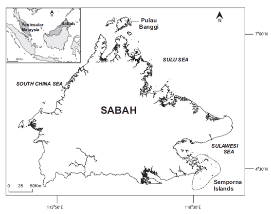 Figure 1 Map of Sabah state.31 The inset map shows Malaysia in shaded gray.