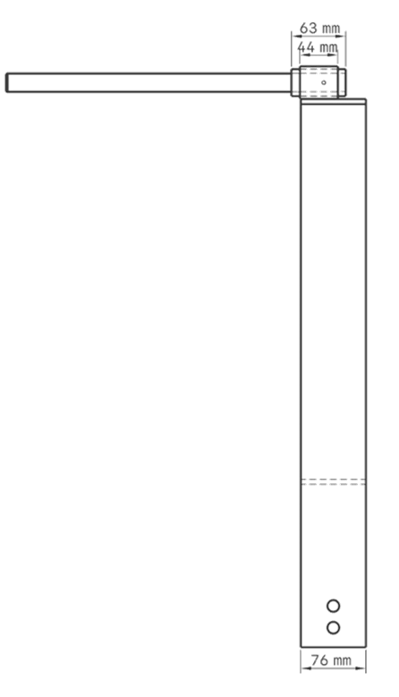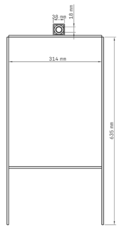 The mount was constructed of grade 6061 aluminum. Two pieces of flat stock aluminum (6 mm thick, 76 mm wide, 635 mm long) comprised the vertical sides of the mount (Figures 2–4). The top piece, welded at a right angle to the two sides, was made using the same aluminum flat stock, and 314 mm long. A 314 mm-long piece of 3.81-mm aluminum angle was welded as a crosspiece at a distance of 23 cm from the bottom of the mount to complete the rectangular frame. Two 63.5mm holes were drilled at a distance of 40 and 50mm from the bottom and centered on each side.