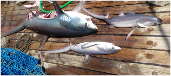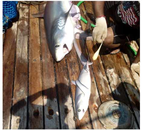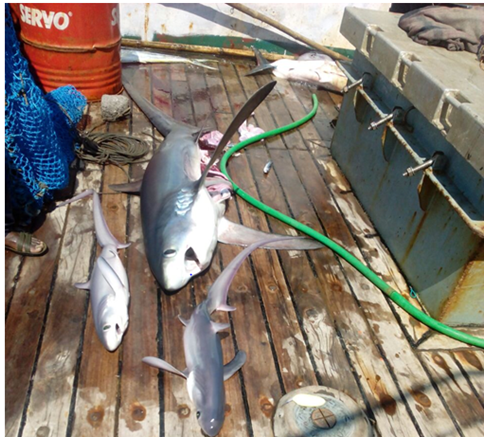 Figure 2 Gravid sharks and Juveniles of Alopias superciliosus caught through longlining by MFV Blue Marlin.