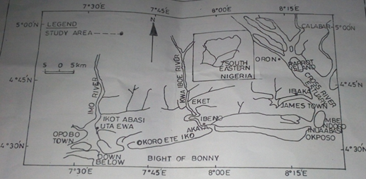 Uta Ewa Creek is a tributary of Imo river that receives effluents from Aluminum Smelter Company (ALSCON) in Ikot Abasi, Akwa Ibom State, and is located at a distance of 4 miles from the creek. Ikot Abasi is located between longitude 7o and 30’E and 7o and 45’E, and latitude 4o and 30’W and 4o and 45’N. It is one of the local government areas of Akwa Ibom State, located within the coastal area of Niger delta region of Nigeria. It has a climate that can be differentiated into two seasons; the wet (raining) season begins in April and ends October, having an average annual rainfall varying between 2000mm to 3500mm Iyamba, 2004 and dry season, which begins in November and ends in March. The occupation of the people are fishing and farming, and the area is a semi-rural community in which the inhabitants depend mainly on rain and surface water as the only source of drinking and for domestic purposes. The major source of protein in the area is sea foods (fish, crabs, crayfish, clams and periwinkle). The effluent from Aluminum Smelter Plant and domestic waste water from Housing Estates (Ferrostal camp, Sweato camp, Worker’s camp, Berger’s camp and ALSCON Camp) in Ikot Abasi are discharged into this creek.