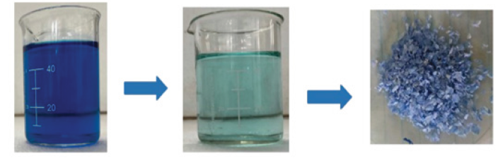 The methylene blue dye adsorption using chitosan obtained from Fenneropenaeus indicus shrimp shell waste was followed by the method of Rahman and Akter.13 A total of 500ml of 10ppm stock solution of methylene blue reactive dye was made up by dissolving 5mg of methylene blue dye in 500ml of distilled water (Figure 3). The adsorption isotherm was carried out using prepared solution.
