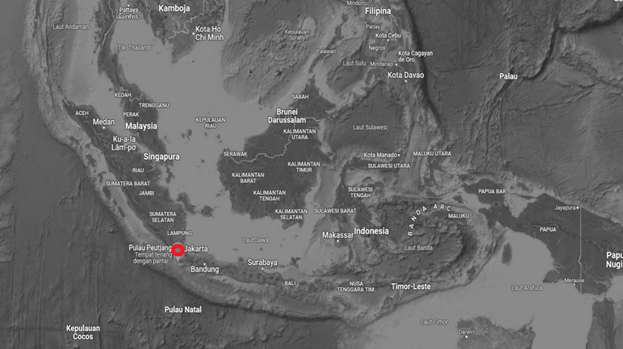Figure 1 Sawarna Coastal Tourism (in red): Latitude DMS: 6°50'29.5"S, Longitude DMS: 106°18'56.5"E.23