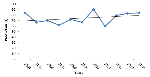 Figure 5 Fishing production in the reservoir of the Sidi Saad between 2004 and 2014.14