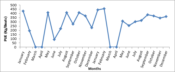 Analysis of data survey: Data analysed in this part of the work become from our field surveys. A total of 11 boats were regularly analysed from January until December in two consecutive years.