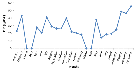 The comparison of the monthly yields from surveys with those calculated from the statistics of the DGPA shows a considerable difference. Indeed, the month of February 2008 corresponds to the moast productive month. We notice a stagnation in the evolution of yields between year (data from DGPA). The minimums of production are obtained during the months of January 2007 and August 2008 (Figure 11).