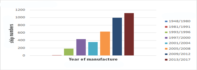 We verified in graph (03) the behavior of the renewal of ships that entered the Amazon during the survey. In this entry we verified boats with the date of manufacture from 1948 to 2017, with a larger number of ships with the most recent date, within the categories of manufacturing year the Amazon has a larger flow of new ships. Although efficient the system is still flawed here in the Amazon for lack of AIS towers. This greatly increases the risk of collisions, and a future increase in merchant vessel traffic may have a greater chance of incidents involving such vessels in those areas that lack AIS towers.
