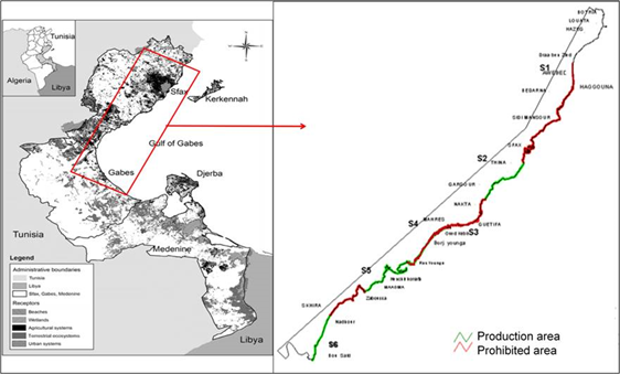 The Tunisian policy in the fishing sector pointed towards the diversification of exploitable species and areas, and it has become crucial to promote the shellfish industry. The Laboratory of Living Resources in the National Institute of Marine Sciences and Technologies, in collaboration with many government agencies, carried out a research program for the stocks assessment and exploration of new potential shellfish production sites along Tunisian coasts.16,22