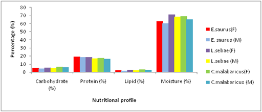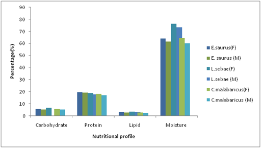Figure 4 Average analyzed nutrient profile of Elope saurus, Lutjanus sebae and Carangoides malabaricus (29.01.15)