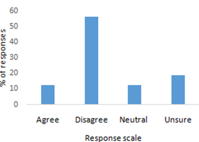 Of those surveyed, more than half of the respondents said they had heard to term aquaponics and agreed that it is a safe and clean method of raising fish and growing vegetables, this response is higher than what has been found elsewhere (Love, et al. 2014, Tamin et al., 2015)13,16