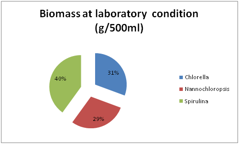 The collected three microalgae were found to be grown in media, the maximum growth rate and biomass were obtained only in Chlorella vulgaris and Spirulina platensis not in Nannochloropsis bacillaris. Hence, Chlorella vulgaris and Spirulina platensis were selected and its growth and biomass production on the basis of efficiency for bioactive molecules of pharmaceutical activity when compared to Nannochloropsis bacillaris.