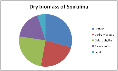The following parameters were determined for all the three microalgae strains: chlorophyll ‘a’ content, carotenoid content, biomass and biochemical composition such as protein, carbohydrate and lipid contents and the distribution of fatty acids.
