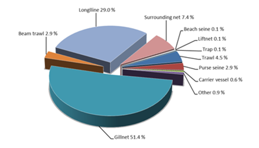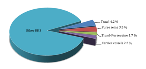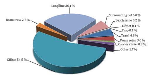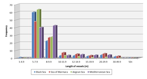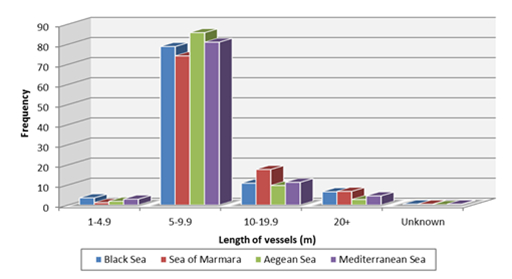 There are 14340 fishing vessels which are composed of more than 85 % below 12 meters and mostly made of wood licensed in Turkey according to year of 2015 government statistics. Passive gears such as gillnets, hook and lines, or pots and traps are mostly used for small-scale fisheries. However mobile gears such as dredges and beam trawls are performed by vessels over 8 m in length. Taking into consideration of operating type of the licenced vessels, the most recent distributions of fishing gears based on SSF in 2015 are shown in Figure 6.
