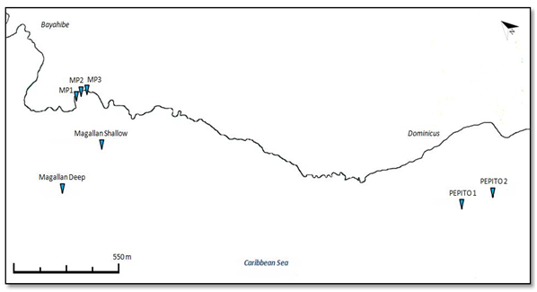 Table 1 Coordinates of the sites where the transects were conducted in Bayahibe: Magallan Deep (n=7), Magallan Shallow (n=4), Magallan Beach (n=3), PEPITO1 (n=2) and PEPITO2 (n=3)