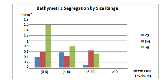 Bathymetric distribution for the different size ranges