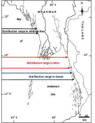 I am indebted to Dr Aung Myat Kyaw Sein, Rector of Mawlamyine University and Dr Mie Mie Sein and Dr San San Aye, Pro-Rectors of Mawlamyine University, for their encouragement and supports in preparing this work. I am very grateful to Dr San Tha Tun, Professor and Head of the Department of Marine Science, Mawlamyine University, for his valuable suggestions and constructive criticisms on this study. I would like to express my sincere thanks to colleagues of Field Observation Group, Department of Marine Science, Mawlamyine University, for their kindly help me in many ways during field trip. Many thanks go to Daw Lwin Lwin, Retired Lecturer of the Department of Marine Science, Mawlamyine University, for her assistance in preparations of the manuscript. I would like to thank my beloved parents, U Win Maung and Daw Than Than Aye, for their physical, moral and financial supports throughout this study.