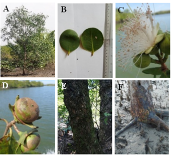 Figure 15 Sonneratia griffithii: (A) Habit. (B) Leaves. (C) Inflorescence. (D) Fruits. (E) Stem and (F) Root.