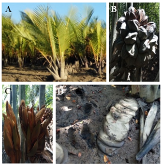 Figure 13 Xylocarpus granatum: (A) Habit. (B) Leaves. (C) Fruits. (D) Inflorescence. (E) Stem and (F) Root.