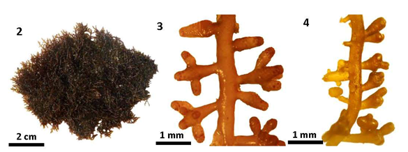 Figure 2-4 Field collected plant of Laurencia sp. 1. (2). Habit of plant. (3) Part of