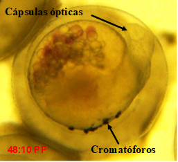 Figure 8 Developing embryo of Parablennius marmoreus in the early stage: optic capsules, chromatophores.