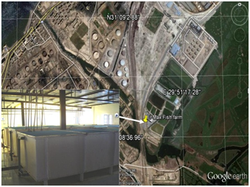 250 Fingerlings of the African catfish Clarias gariepnus (mean body weight 100 ± 0.67g) were collected from Edku Lake then transported to the fish hatchery in El-Max Fish farm, National Institute of Oceanography and Fishers (NIOF), Alexandria, Egypt. After two weeks for acclimation, the fish were divided into 5 groups, 50 fish each. Consequently, the fish were randomly distributed to 25 fish per cubic meter of rectangular fiber glass tanks and kept in aerated rectangle fiber glass tanks (0.90x 3.70x 1.90 m) (Figure 1). The tanks were filled with tap water in which oxygen saturation is 5.6g/l at pH 7.9. Water temperature range was 26-27°C. Photoperiod 12:12 Light: Dark). The five fish groups were exposed to different five diets; group 1 (G1) that fed on commercial pellets diet without yeast and acts as a control, group 2 (G2) that fed on commercial pellets diet with 2% local Baker Yeast (Saccharomyces cerevisiae), group 3 (G3) that fed on commercial pellets diet with 4% local Baker Yeast (Saccharomyces cerevisiae), group 4 (G4) that fed on commercial pellets diet with 2% imported Tonilisite (Saccharomyces cerevisiae) and group 5 (G5) which fed on commercial pellets diet with 4% imported Tonilisite (Saccharomyces cerevisiae). The feeding rate was 3% of the biomass twice a day, at 10.00 AM and 2.00 PM, for six days a week for a period of 8 weeks. The composition and chemical analysis of the experimental pellets were measured and presented in Tables 1 & 2. The diets were analyzed according to the standard methods of AOAC (1990). The experimental tanks were inspected daily to remove dead fish, if present.