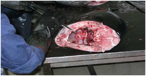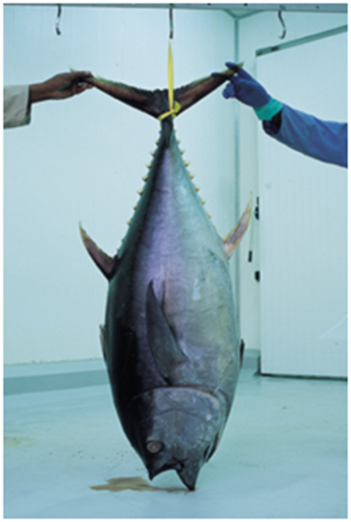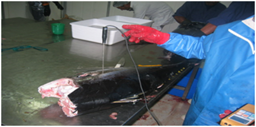 Dealing with farmed tuna inside the processing plant should be in a way that maintains fish quality and maintain me at temperature internally and externally and determine the quality of meat in terms of the percentage of the fats in fish flesh.