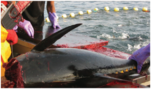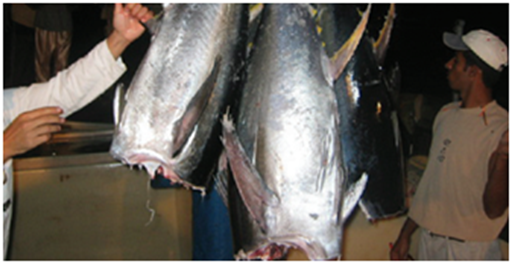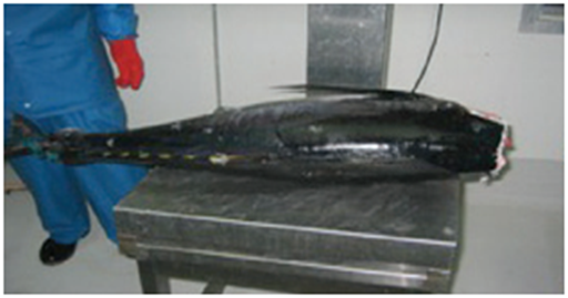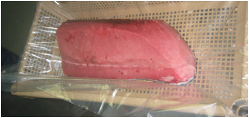 Figure 16 Tuna caught from the sea. Note with it has high quality meet but there is no glitter in the meat which shows the decline in the proportion of fat.