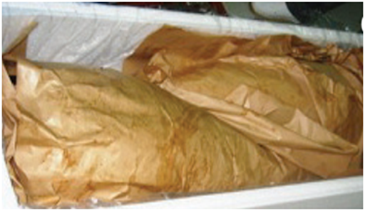 Figure 17 Farmed tuna fish wrapped securely; ice will cover the fish on top to keep the meat fresh in the case of export.
