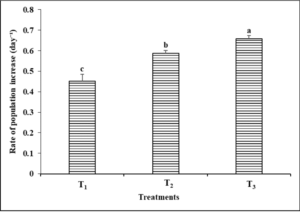 Where, = initial population density, and = density of population after time (days).34 The value of was obtained from a mean of 4-5 values during the exponential phase of the population growth in each treatment.