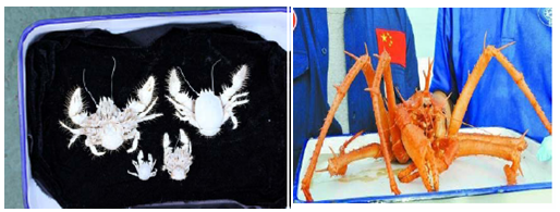 The R&D program of JIAOLONG manned submersible was approved in late 2002 (Figure 2) and after six-year R&D with joint research by related agencies of China, from 2009 to 2012, the 1,000m, 3,000m, 5,000m and 7,000m class sea trial was conducted in South China Sea, South China Sea, Northeast Pacific Ocean and Mariana Trench respectively, with a maximum dive depth of 7,062m, which has made China to be the fifth country grasping manned deep submergence technology over 4,500m ability after the United States, Japan, France and Russia.19-21 During the 4-year sea trials, some deep-sea creatures have been sampled and a lot of high definition pictures and videos on deep-sea creatures have been taken (Figure 3-5).